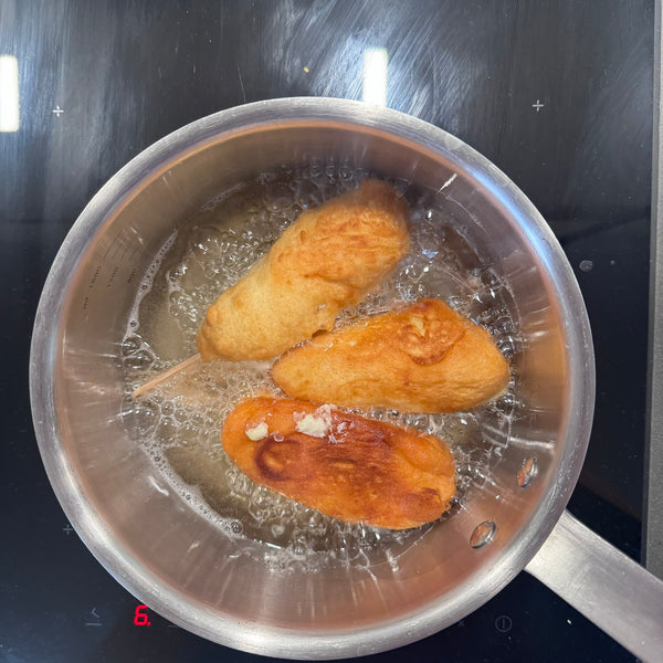 One of the challenges of making the perfect American corn dog recipe is preventing a soggy batter. To avoid this, make sure to thoroughly dry the hot dogs before dipping them in the batter. Also, ensuring the oil is at the right temperature (about 175-190°C or 350-375°F) prevents excess oil absorption, keeping the exterior crisp.