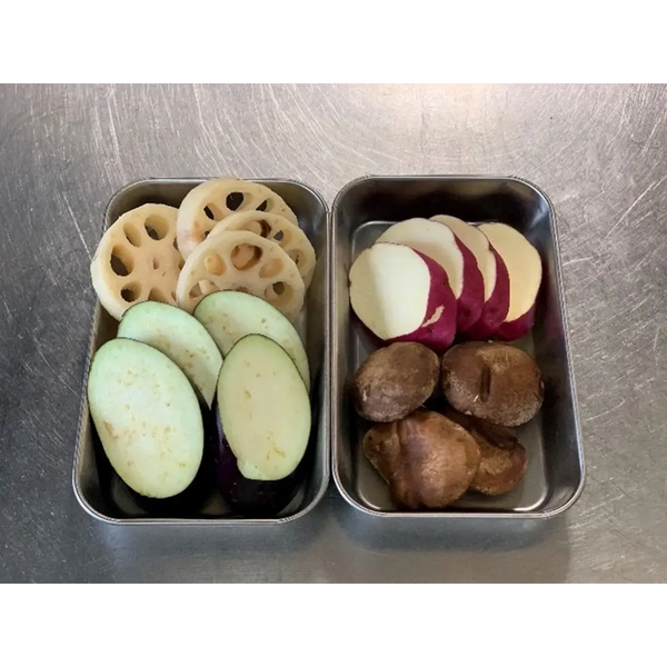 Kanto style tempura is deep-fried at a high temperature for a short time using sesame oil, while Kansai style tempura is deep-fried at a low temperature for a long time using salad oil (what is known as vegetable oil in other countries).