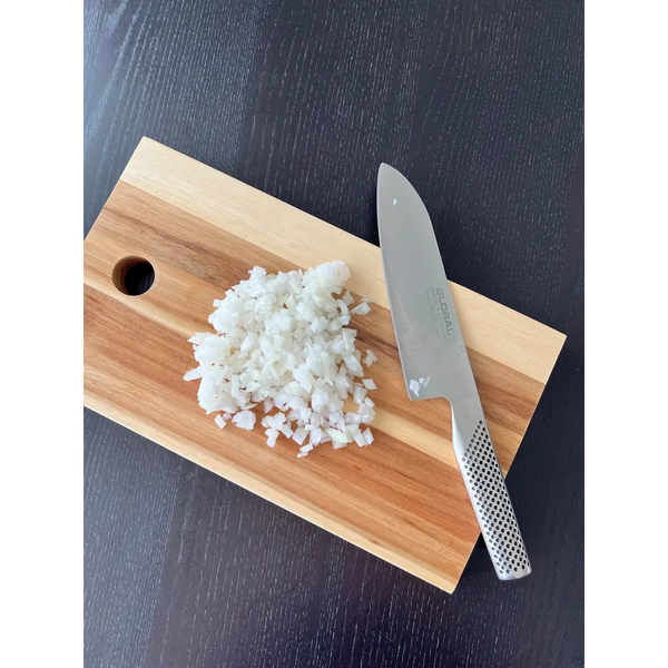 Chop the onion for the hambāgu patties. Chop them into small pieces like in the picture. You do not need to cut them too finely, but make sure that they are small enough to be bite-sized.