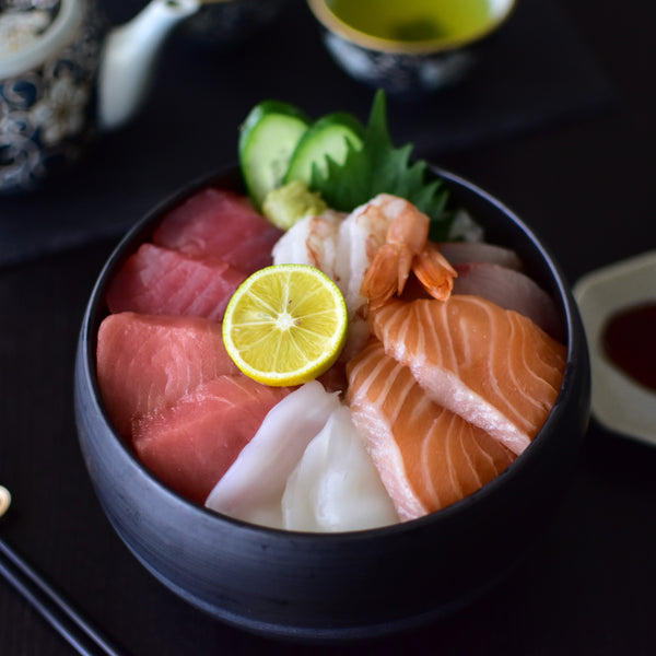 Kaisendon (海鮮丼) is a simple yet elegant Japanese dish where fresh seafood is artfully arranged on a bed of rice in a donburi bowl. The name "kaisendon" translates directly to its components: 海 (Kai = sea), 鮮 (Sen = fresh), 丼 (Don = donburi bowl), which perfectly describes the dish itself.