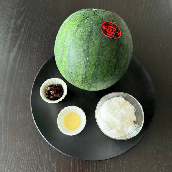 - 1 small-size watermelon about 1400g with peel (for watermelon kakigori)