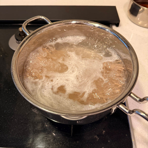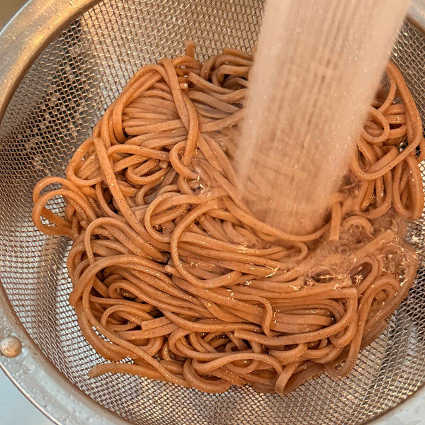 • Boiling and finishing soba noodles: Soba quality matters. Choose noodles made with a high buckwheat ratio and firmer texture, which hold up well in hot broth. After boiling, rinse them in cold water to preserve their bite—this step is crucial before reheating them in the soup.