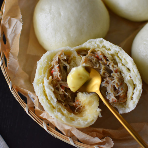 The heart of kani man is, of course, the crab meat. It must be fresh and delicious enough to stand on its own. What’s more, kani man is filled with crab meat seasoned with kanimiso, a rich, miso-like paste found inside a crab's intestinal area. This unique ingredient adds an incredible depth of flavor to the dish.