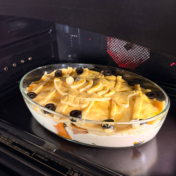 Though I’ve added some shortcuts to simplify the process, one step you can’t skip is decorating the pie with a fish design. I used a sharp knife to trace and cut out the fish shape before the puff pastry softened, ensuring a crispy, flaky crust. It’s a bit tricky but definitely fun.