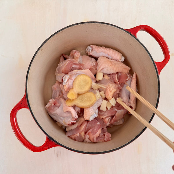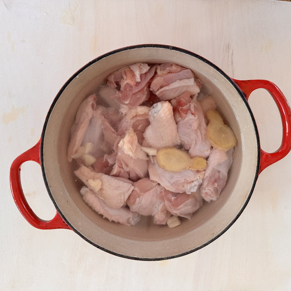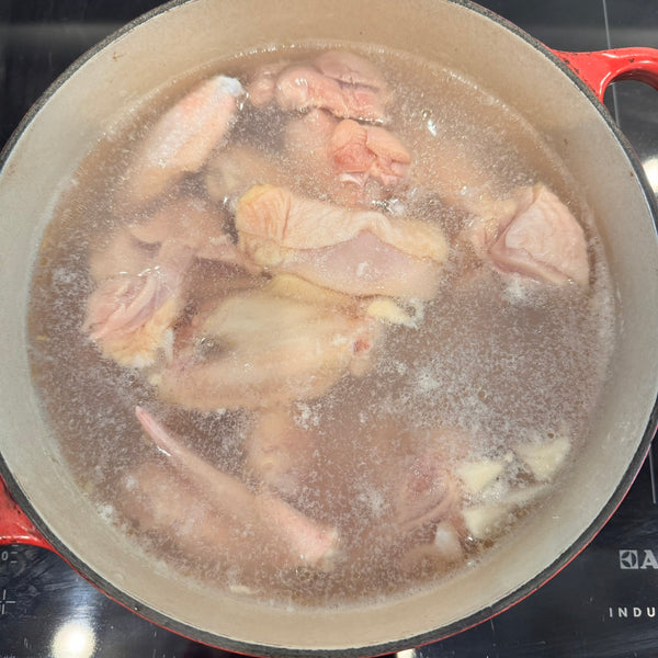 • Keep the Simmer Gentle – Place chicken and bones in cold water and maintain a low, steady heat. Avoid rapid boiling to preserve clarity and texture.