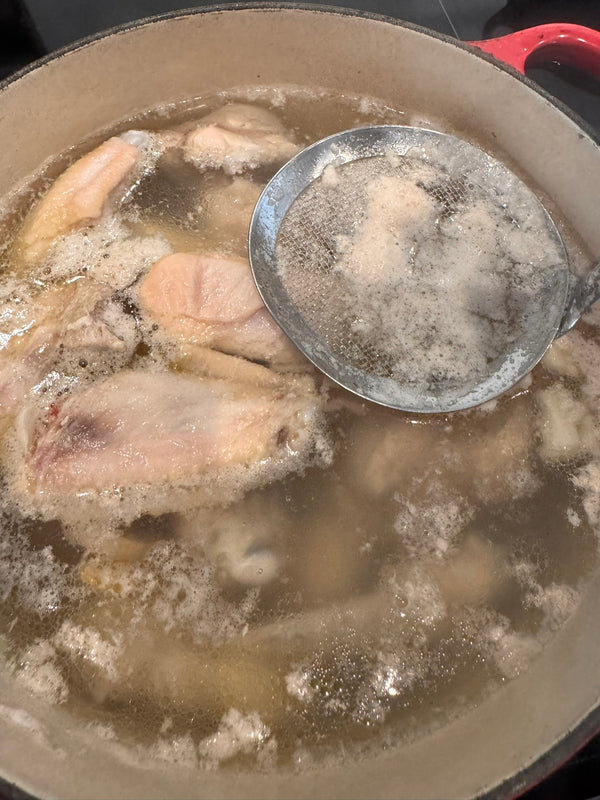 • Skim Frequently – Foam will rise during the first 15–20 minutes. Remove it carefully with a skimmer to ensure a clean, clear broth.