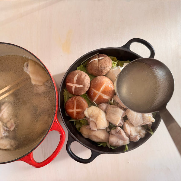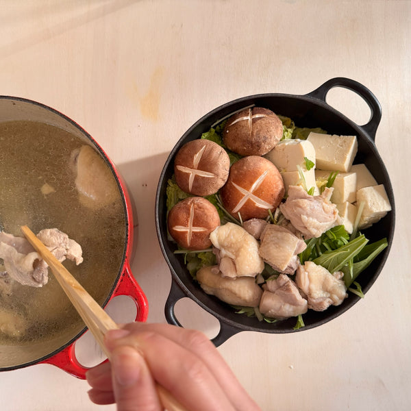 Mizutaki is a traditional Fukuoka chicken hot pot featuring a clear, collagen-rich broth. Simmered slowly in plain water, the chicken releases natural umami and gelatin, creating a simple, comforting dish perfect for cold-weather or year-round meals.