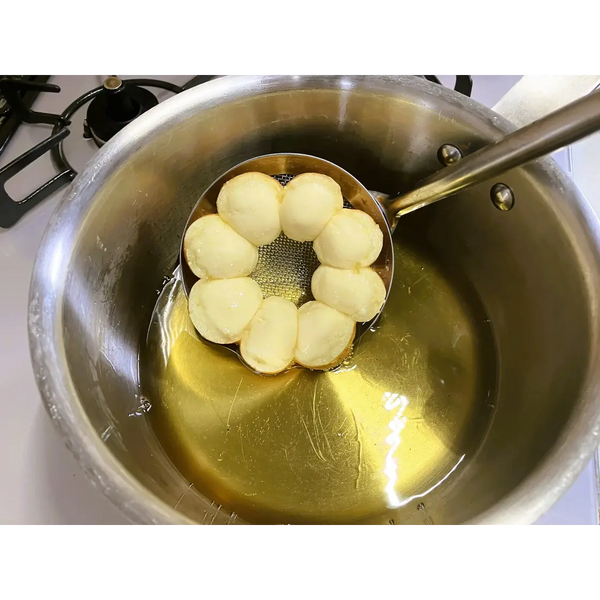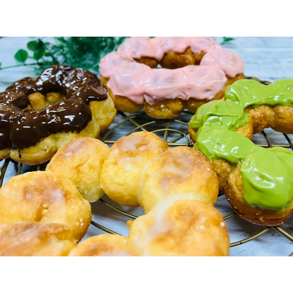 These mochi-like donuts, also called Pon-de-rings, are made from 8 small dough balls connected together in a ring. Biting into one reveals a delightful contrast: a lightly crisp outside with a chewy, satisfying inside.