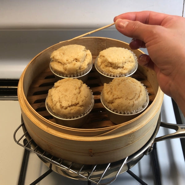 Here’s a tip to make perfect mushi-pan: preheat your steamer and cover it with a kitchen towel to prevent water from dripping onto the cakes. If your cakes turn out dense, try sifting the flour or adding a little more baking powder.