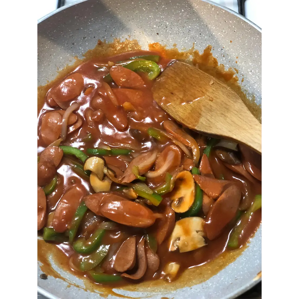 It’s a super simple meal. You don’t need any fancy skills to whip it up either. Just toss those noodles in a pan with the veggies and meat, add a generous amount of ketchup sauce, and there you have it! In no time at all, you’ve created a plate full of absolute deliciousness.