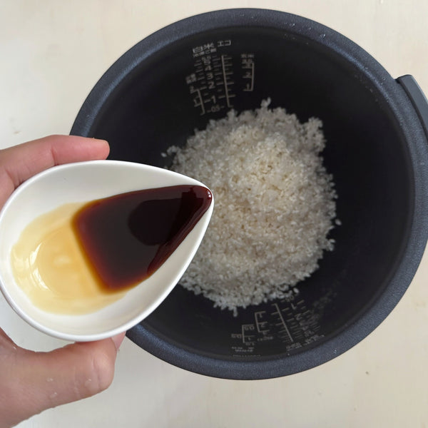 Seasoning – Shiro dashi: A concentrated soup base made from bonito, kelp, soy sauce, and mirin. It adds balanced umami and light seasoning to the rice without darkening its color too much.