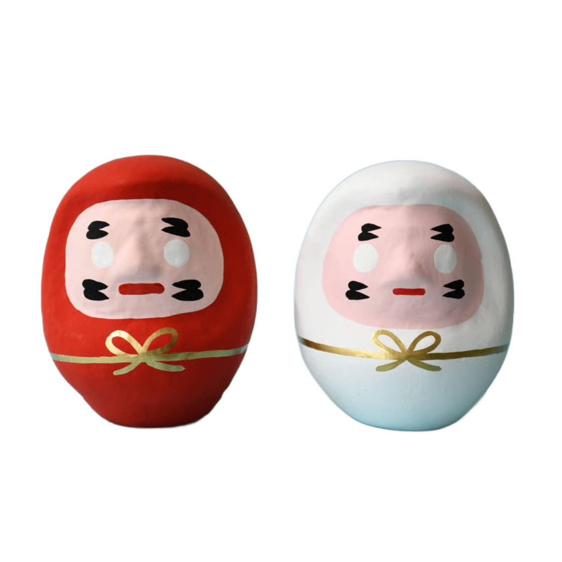 - Red and white daruma pair for celebrations and appreciation